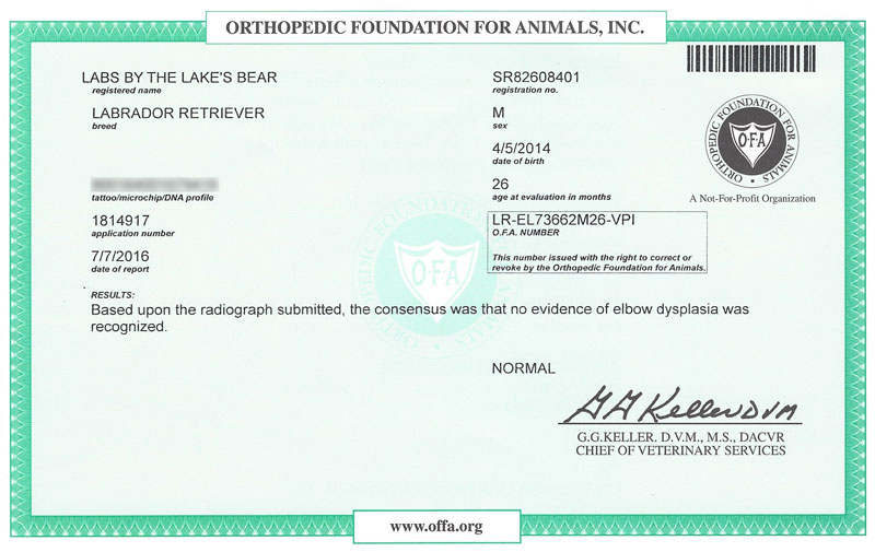 So OFA24E means Orthopedic Foundation for Animals certified at 24 months excellent.